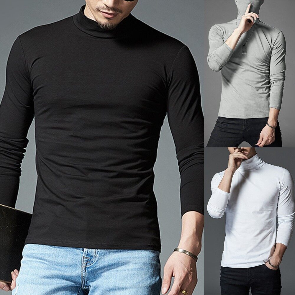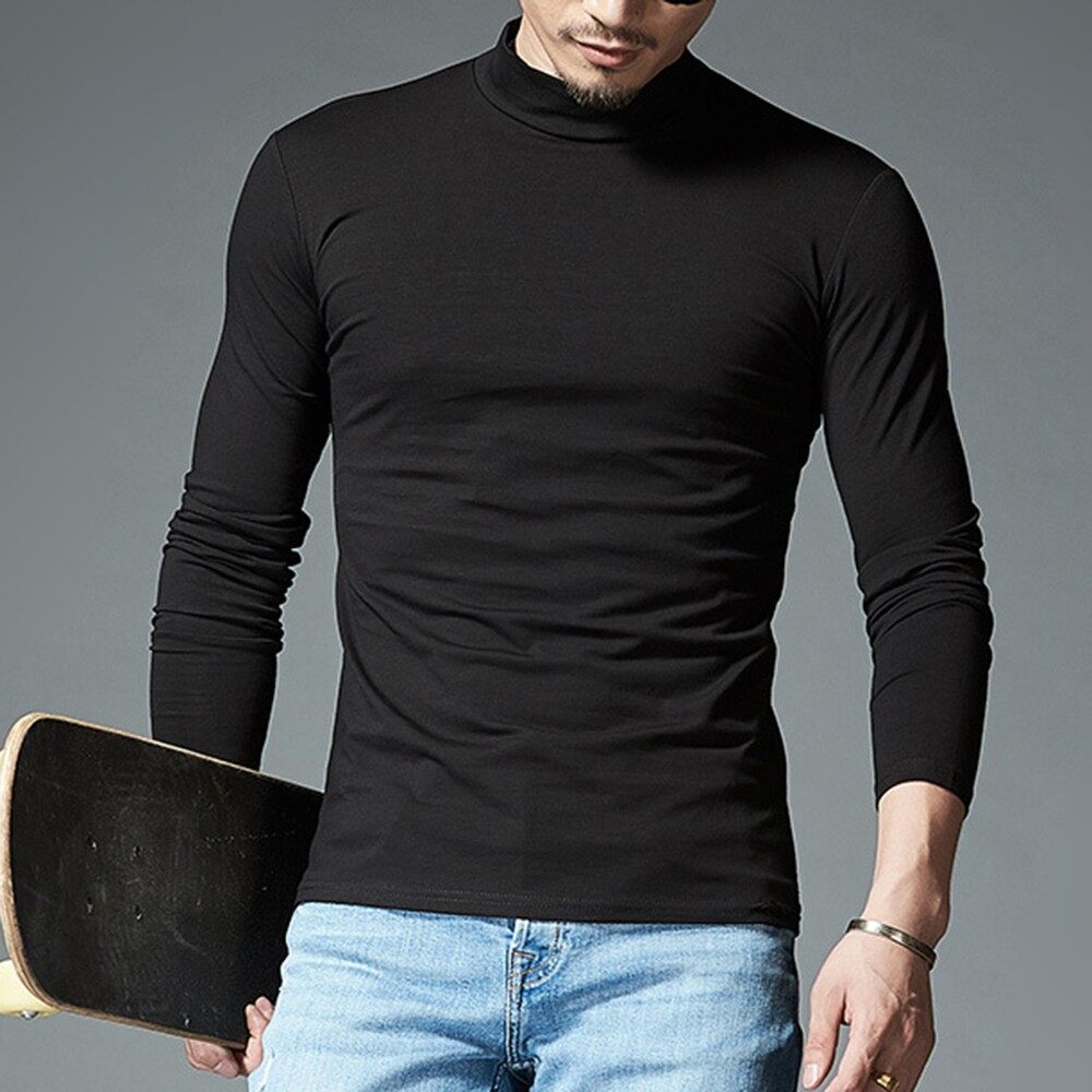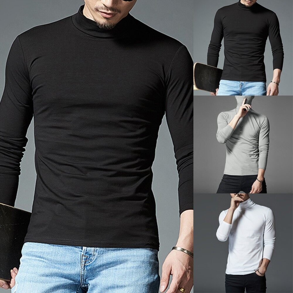 * Item Description: Men's Casual Slim Turtleneck Long Sleeve Tops Pullover T-Shirt Solid Color