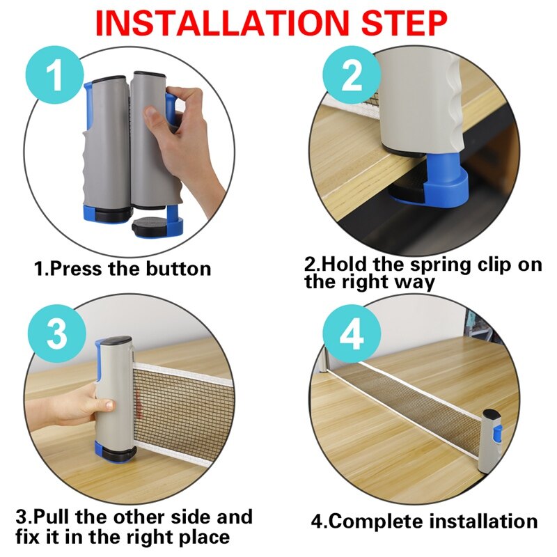 The ping pong net can convert any table into a ping pong table such as office desk, home kitchen or dining table. Just clipped it on the table and you can start your game any where and any time.
