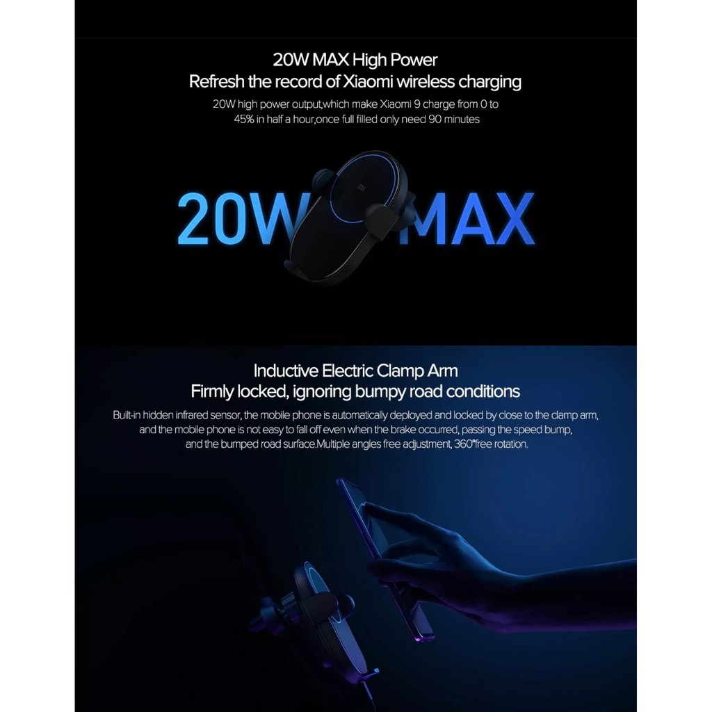 AUTHENTIC XIAOMI PRODUCT :Xiaomi Wireless Car Charger 20W Wireless Fast Charging