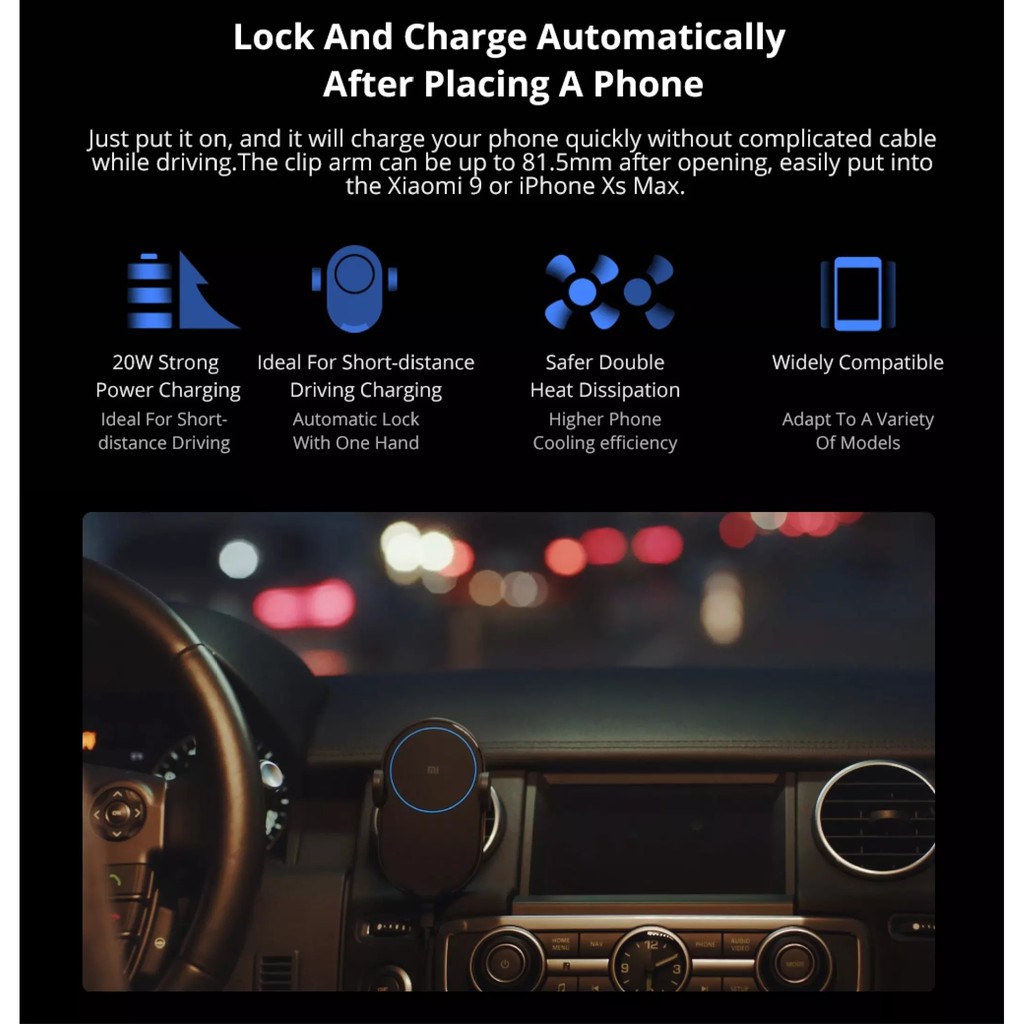 AUTHENTIC XIAOMI PRODUCT :Xiaomi Wireless Car Charger 20W Wireless Fast Charging