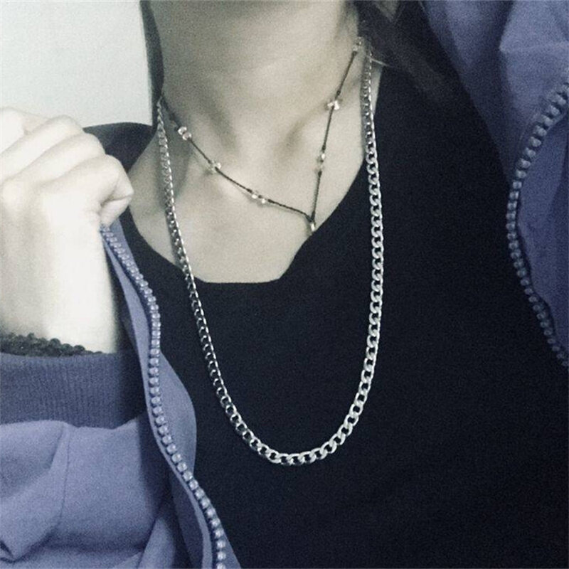Specification Type: Necklace Treatment process: electroplating Style: Unisex Material: Alloy Size: length 60cm, width 3.5/5/7cm Color: silver Quantity: 1