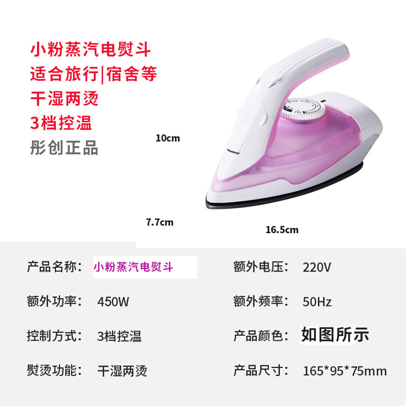2. Pink small iron, voltage 220V/110V two-eye socket (suitable for export) power 25W (suitable for school dormitory, ironing some thin clothes, special iron for beans)