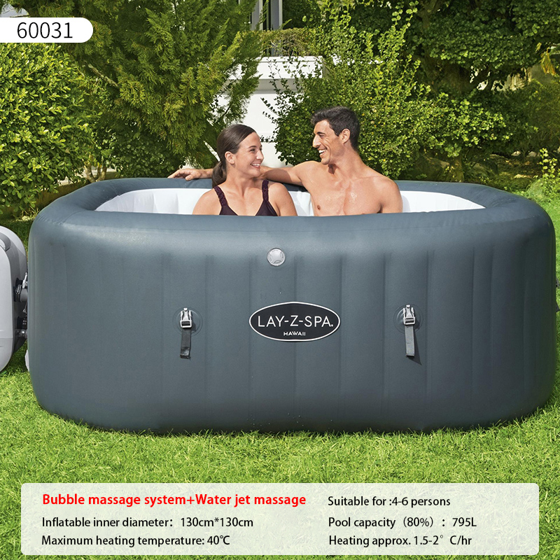 size:180*66cm round spa inflatable pool suitable for 2-4 people (60001#)196*61cm round spa inflatable pool suitable for 4-6 people (60011#)180*180*71cm square spa inflatable pool suitable for 4-6 people (60021#)180*180*71cm square spa inflatable pool suitable for 4-6 people (60031#)