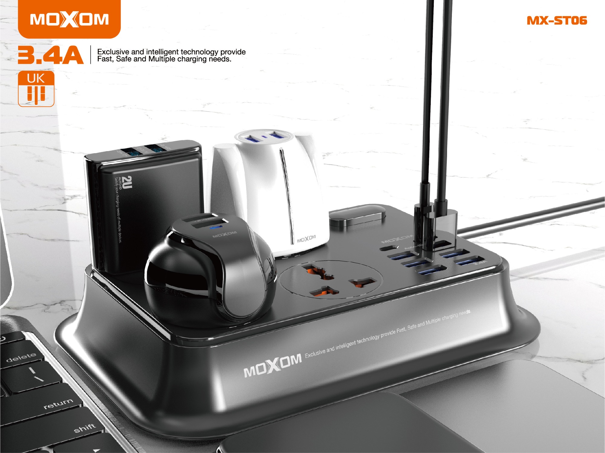 Meet your multiple charging needs in an organized and safe way. Fast charging to charge devices fast and easily.