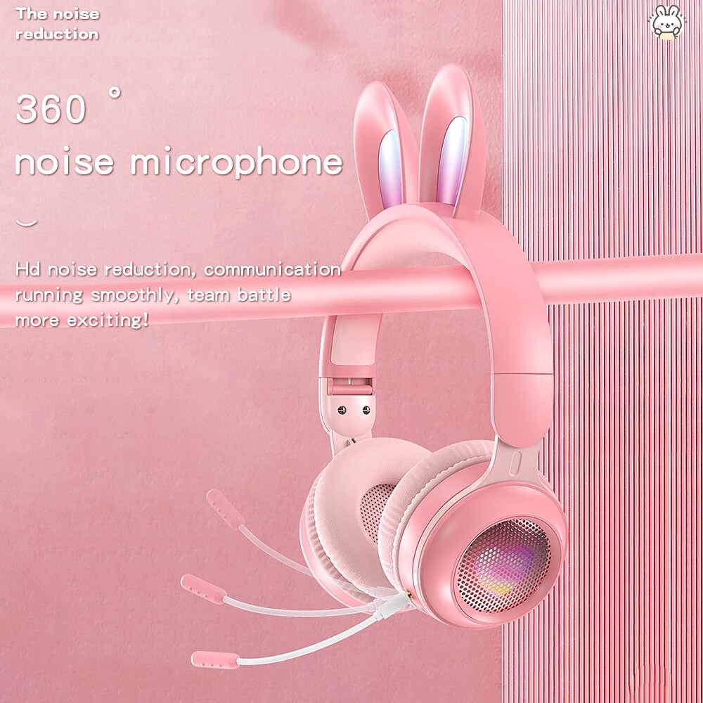 Rabbit Ear Love Beating Flash Colorful Light Headphones