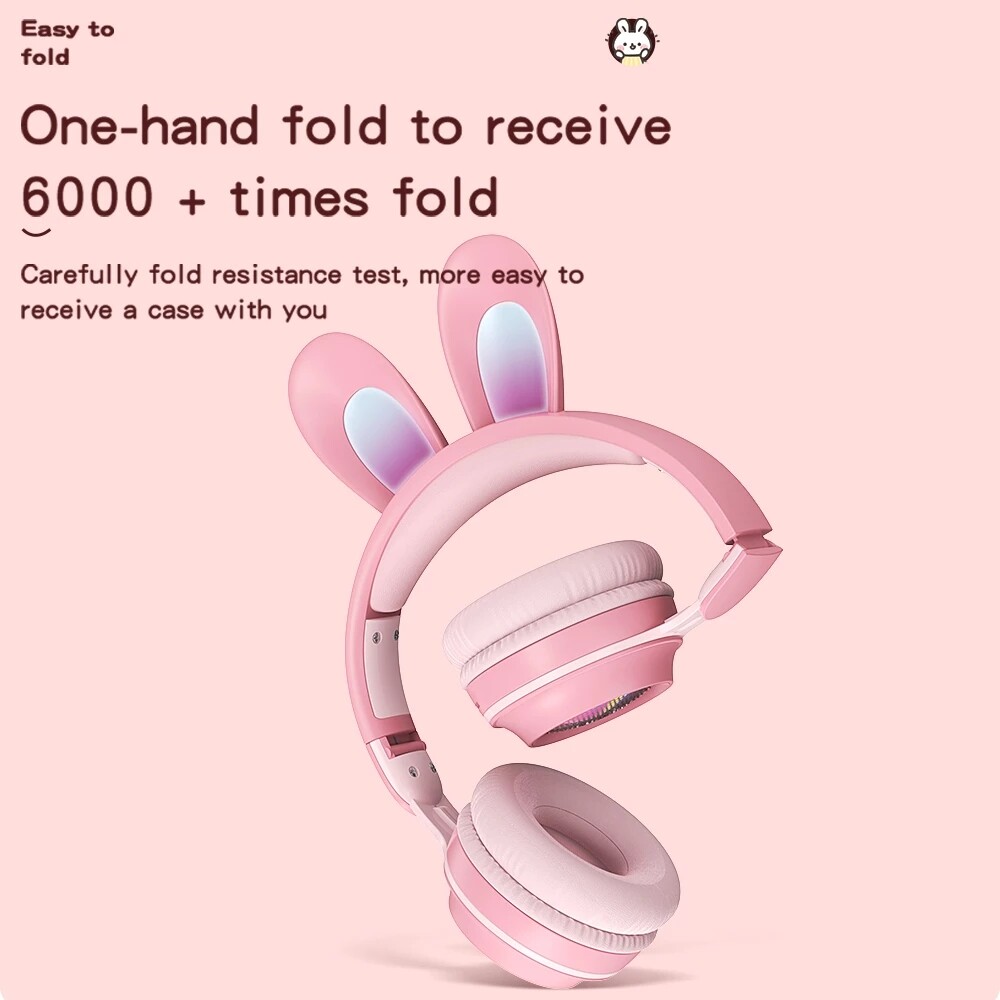 Rabbit Ear Love Beating Flash Colorful Light Headphones