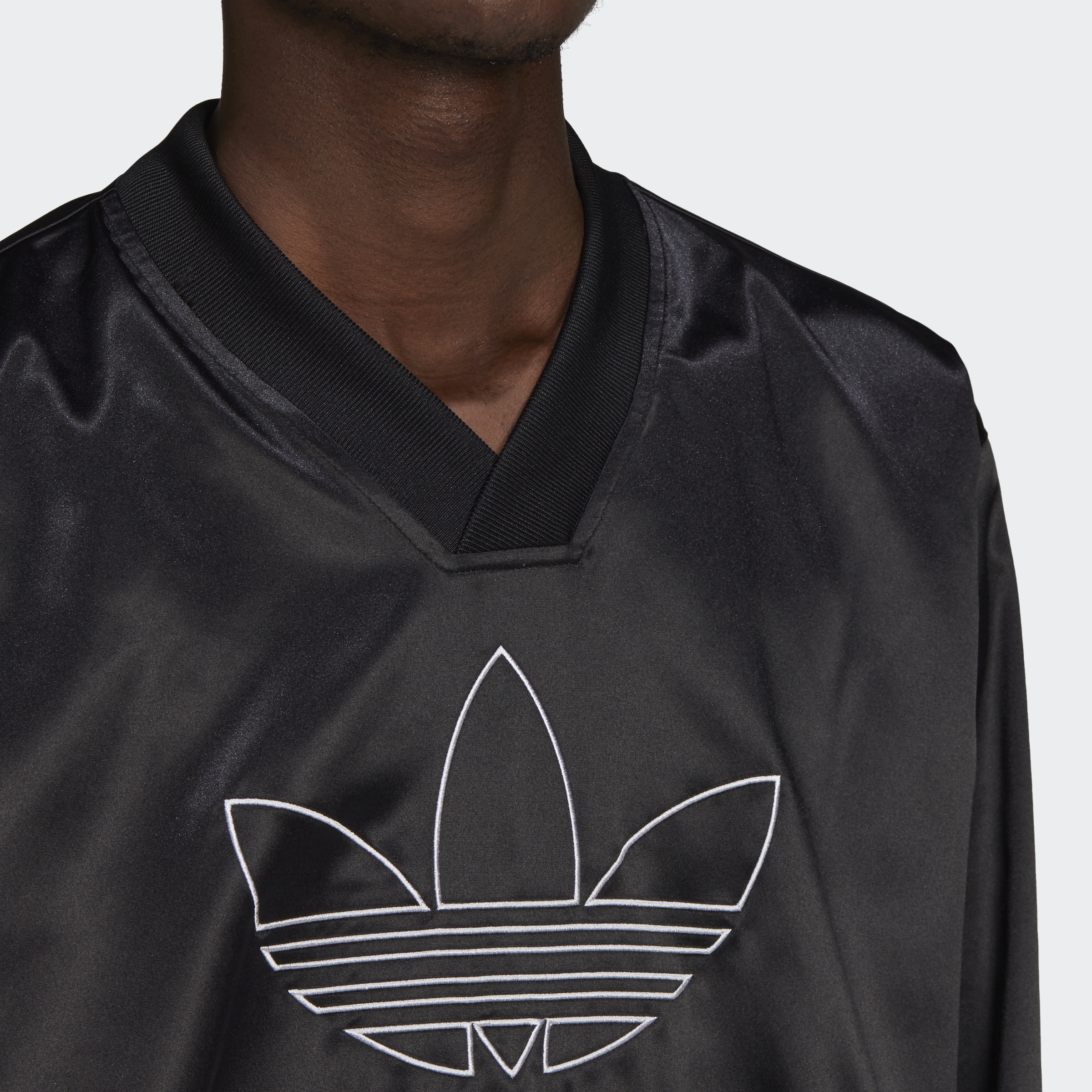 No need to hide your inspiration. Let your love of adidas style shine in this satin jersey. The football-inspired shape would be right at home under the stadium lights. But smooth, shiny fabric has other plans. Lavish vacays and nights out dancing? So much yes. This product is made with Primegreen, a series of high-performance recycled materials.