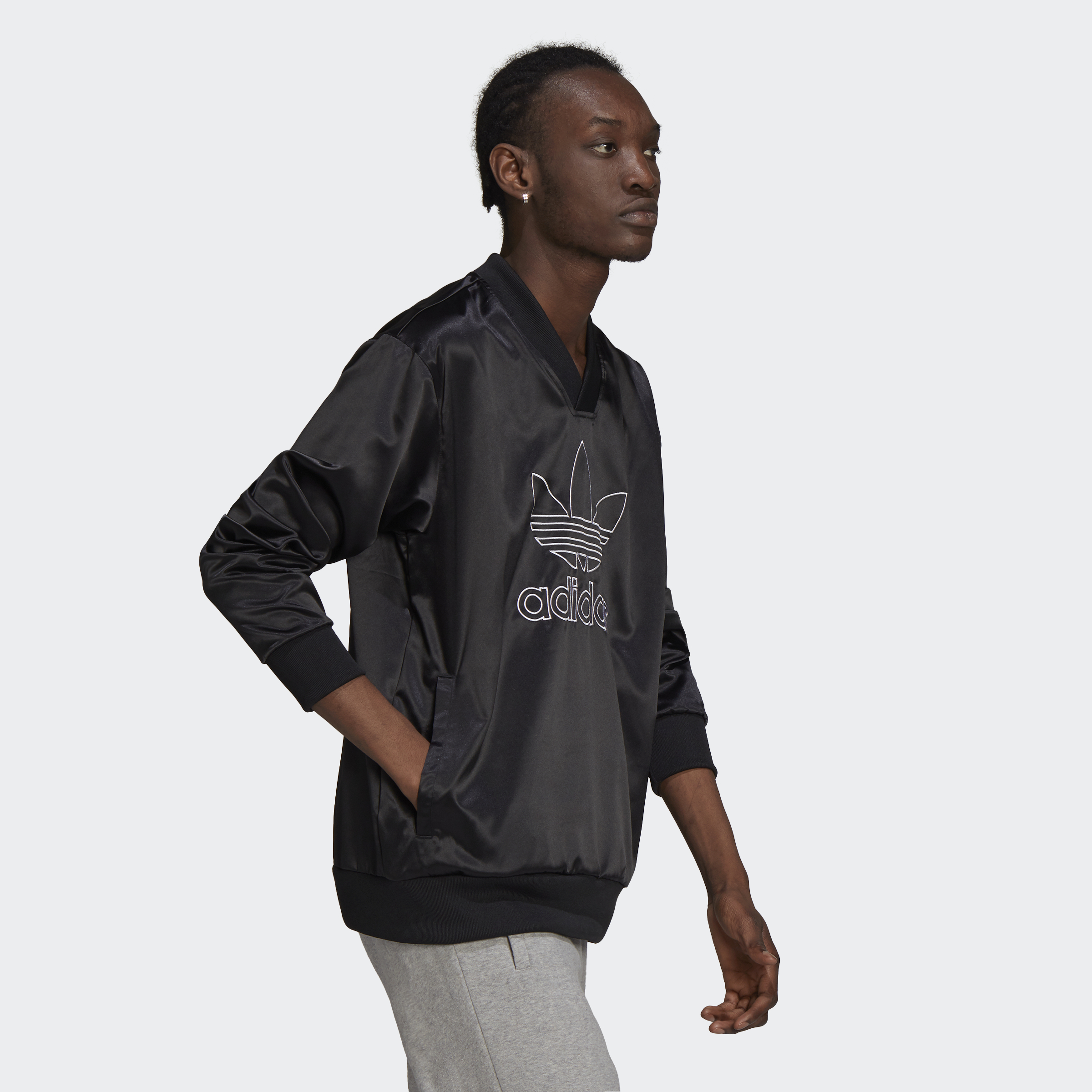 No need to hide your inspiration. Let your love of adidas style shine in this satin jersey. The football-inspired shape would be right at home under the stadium lights. But smooth, shiny fabric has other plans. Lavish vacays and nights out dancing? So much yes. This product is made with Primegreen, a series of high-performance recycled materials.