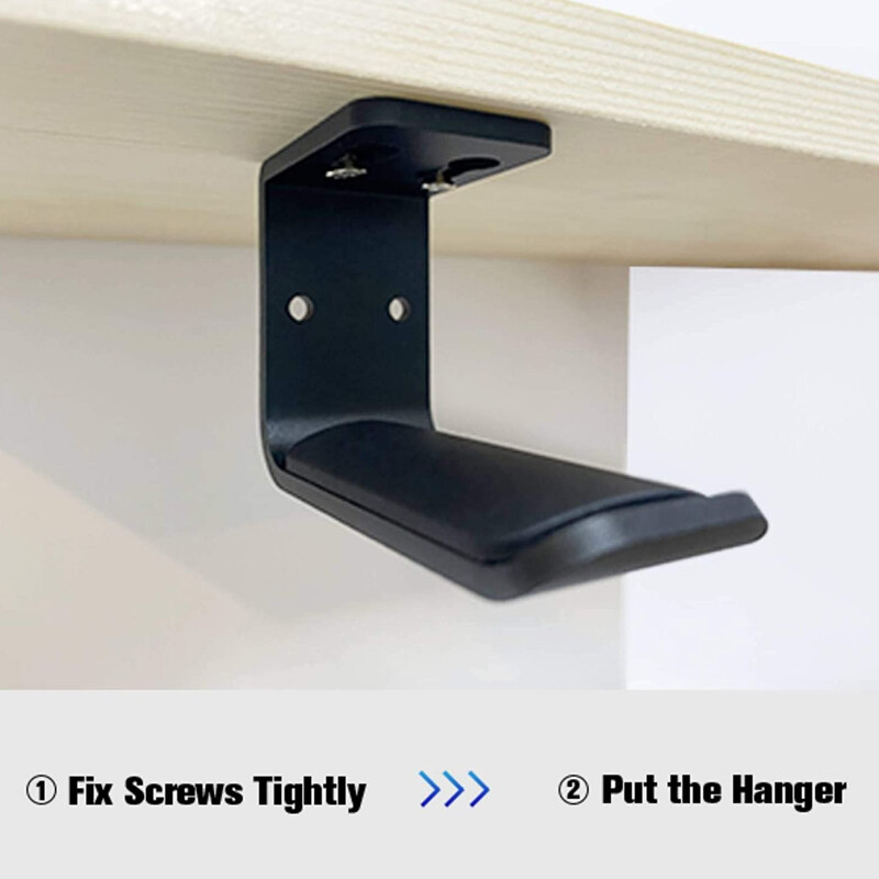 100% brand new and high quality Easy installation with screws Store the headphones elegantly on a wall or other surface Keep it away from dirt, dust and mess on the desktop Save space, do not take up your work surface Reminder: clean the surface before sticking Features: 64x34x50mm material: metal Package includes: 1 x headphone bracket + screw*2