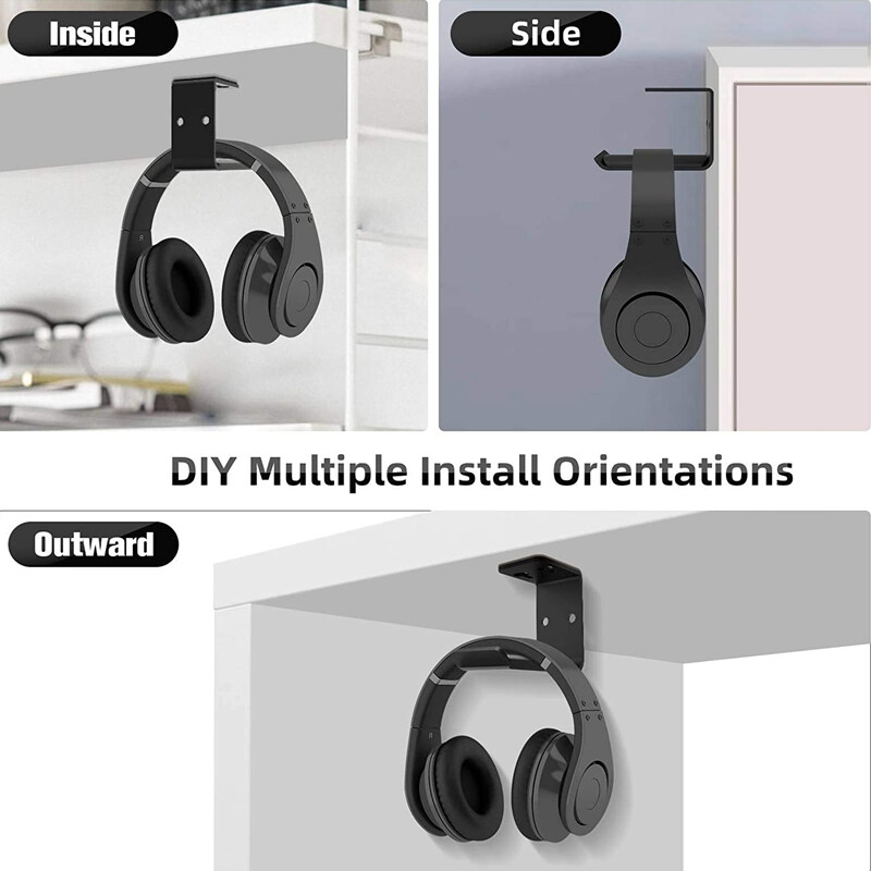 100% brand new and high quality Easy installation with screws Store the headphones elegantly on a wall or other surface Keep it away from dirt, dust and mess on the desktop Save space, do not take up your work surface Reminder: clean the surface before sticking Features: 64x34x50mm material: metal Package includes: 1 x headphone bracket + screw*2