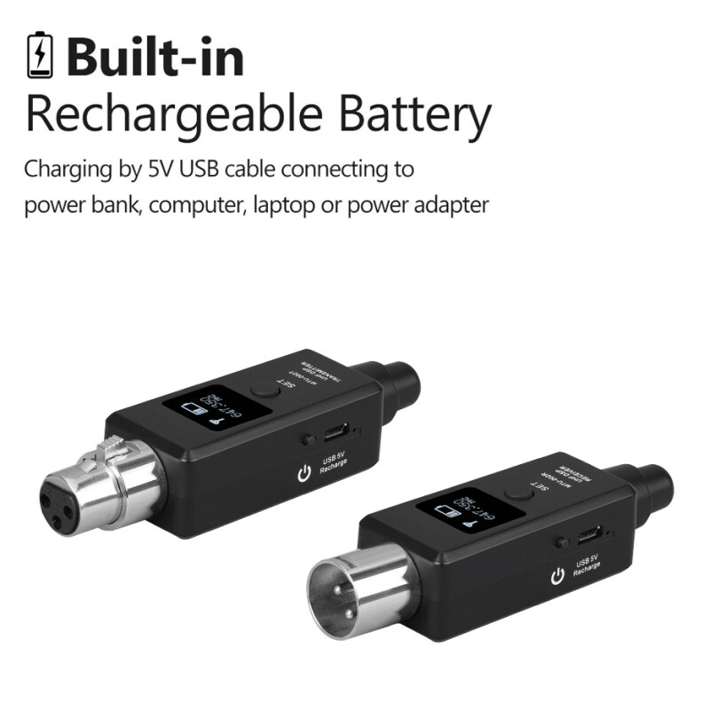 2. Designed for Dynamic Microphones: The transmitter and receiver are suitable for any dynamic microphone, mixer, PA system. Provide stable and reliable wireless transmission. Make sure you get good performance every time. Without cables, the wireless range can reach 100 feet (depending on environmental factors).