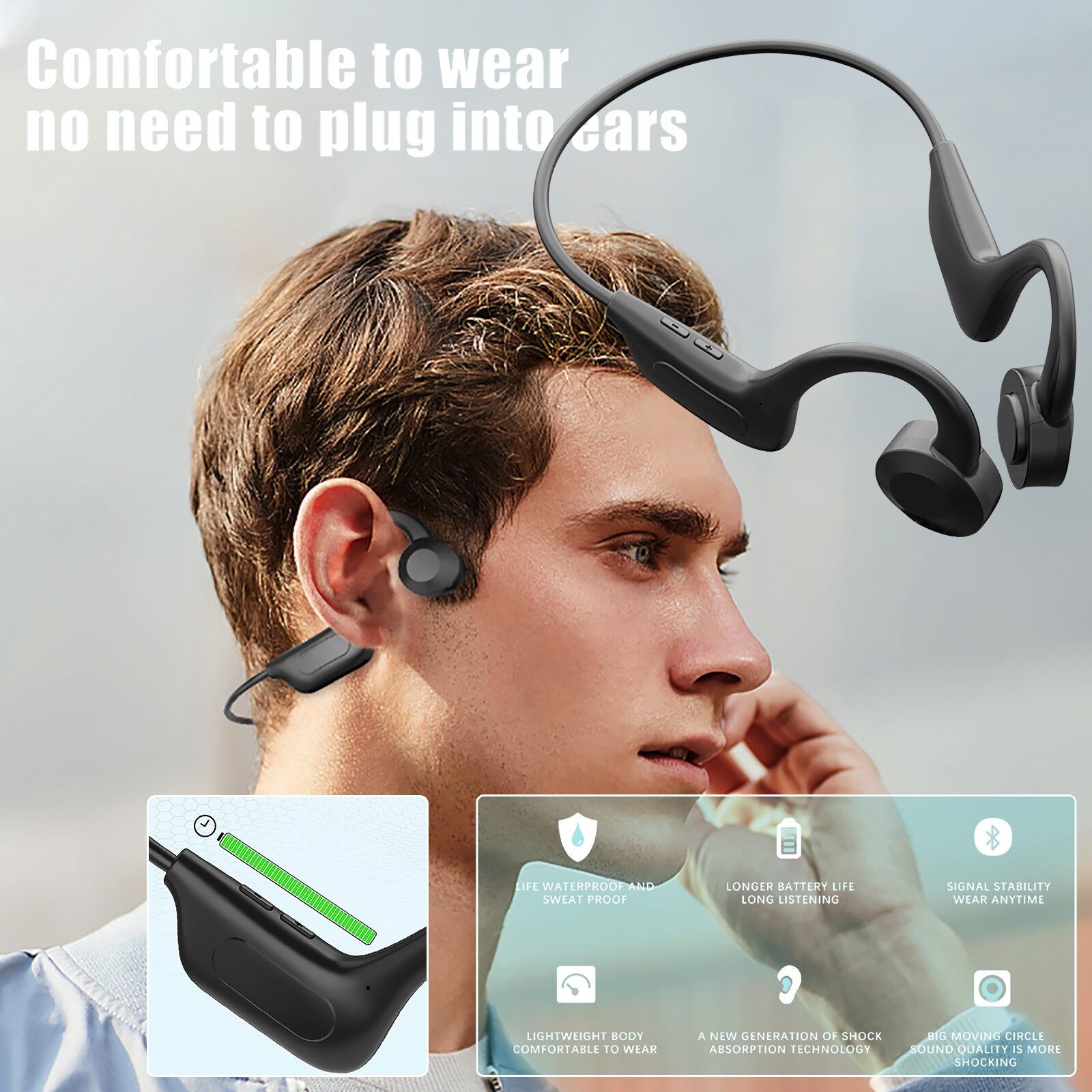 Open wireless headphones surround the directional sound field, open design, sweatproof and waterproof, small body life