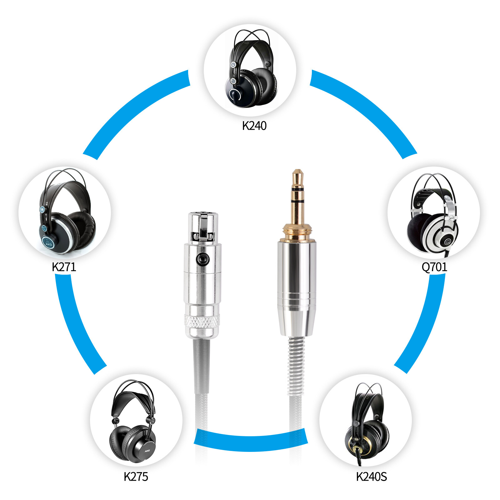 FAAEAL Headphone Replacement Spring Cable OFC 3 Core Mini Headset Upgrade Replacement Line Detachable Upgrade Earphones Wire Fit For AKG Q701 K702 K267 K712 K141 K171 K181 K240 K271MKII K271 Headphones