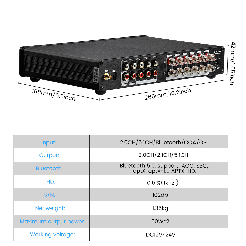 • Audio input: Bluetooth/Coaxial /Optical/ 2.0 Channel RCA / 5.1 Channel RCA