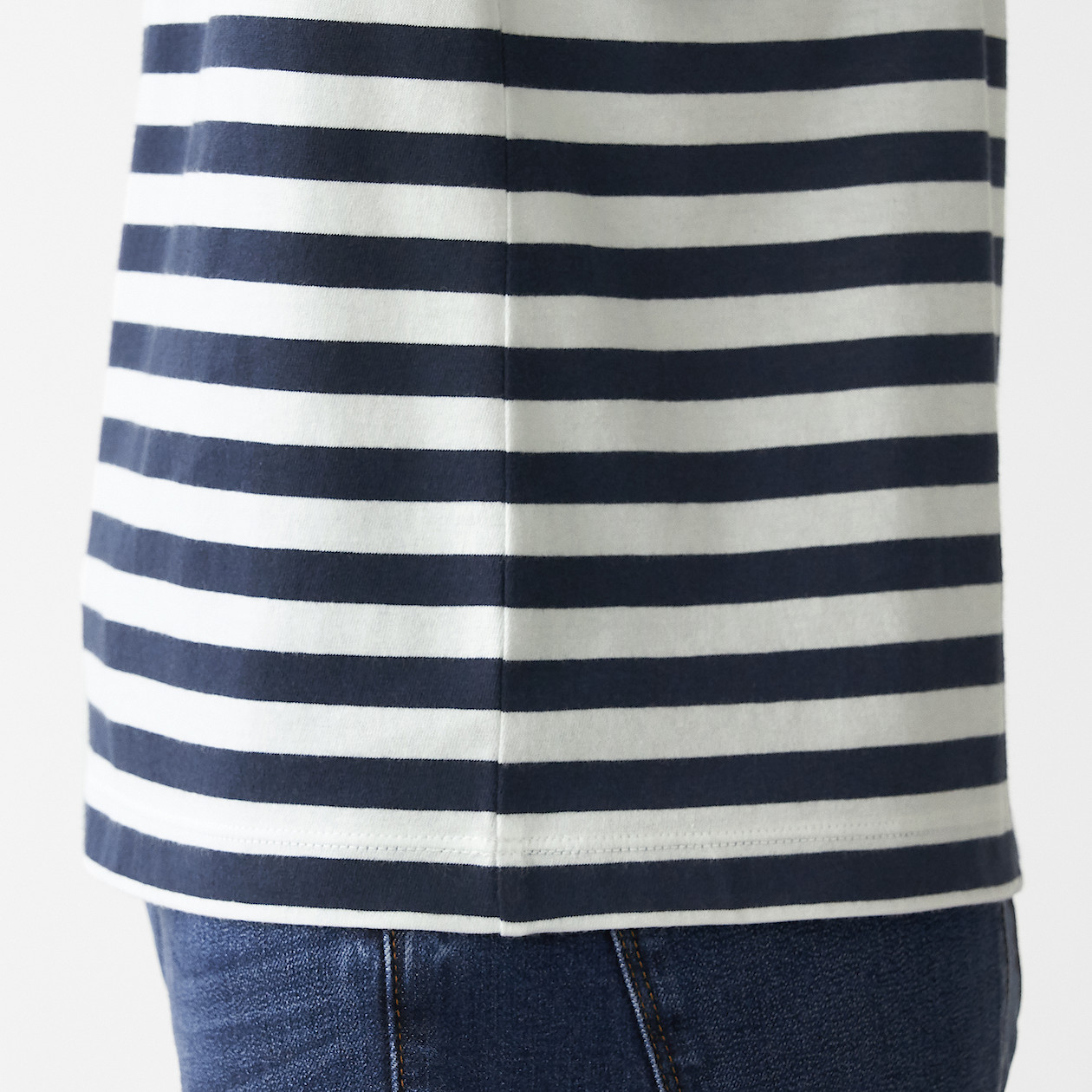 MUJI Ladies Indian Cotton Jersey Stitch Border Crew Neck Short Sleeve T-Shirt