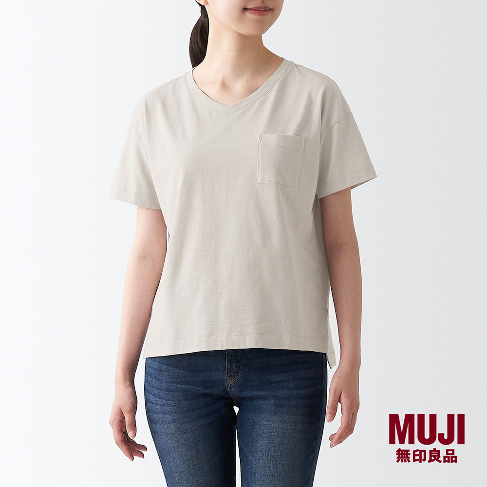MUJI Ladies Slub Yarn Jersey V-Neck Short Sleeve T-Shirt