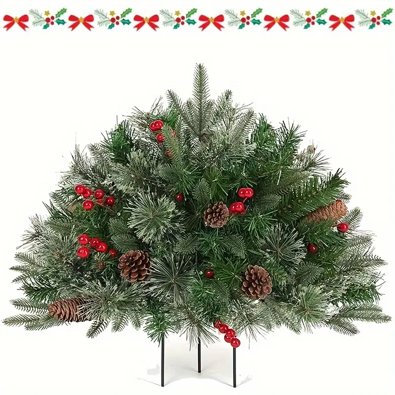 Holiday Flower Pot Decorations, Christmas Flower Pot Filler, Artificial Greenery Tree with Ball Fruit and Red Berries and 60 LED Lights