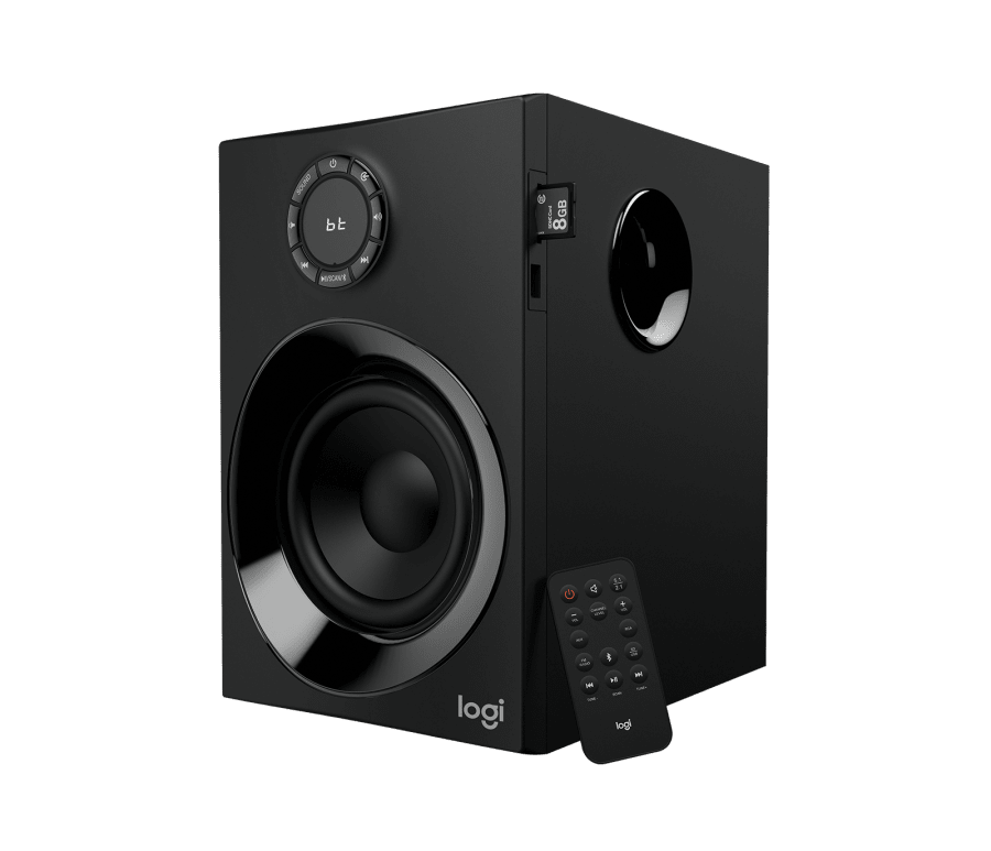 With 160 Watts Peak power on tap, this 5.1 speaker system wraps your space in high-quality audio that sounds amazing. Enjoy true surround sound from any source—your TV, phone, computer, games1 and more. You can even play audio content directly from SD cards, USB drives or FM radio. The 133.35 mm subwoofer driver pumps out bass you can feel, while the included remote and extra-long rear cables make it easy to set up and use