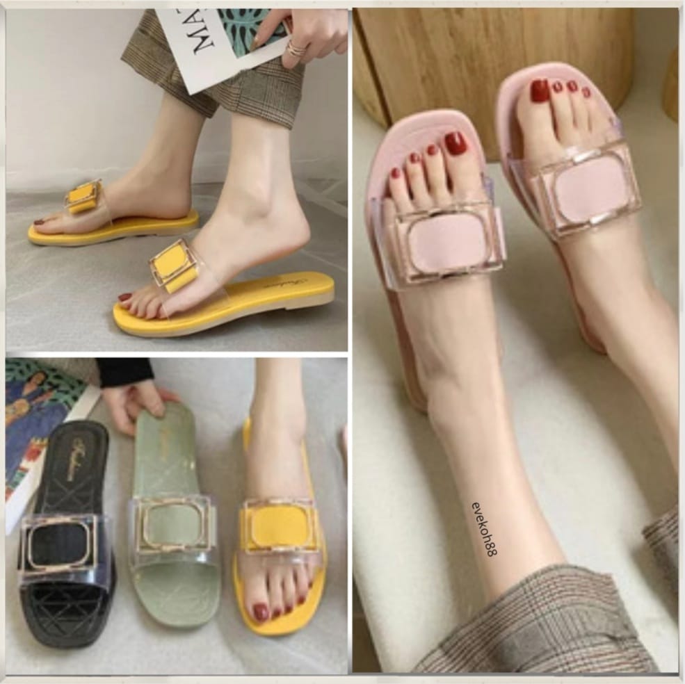 Woman Sandal Slides Square Buckle Summer Daily Fashion Transparent Latest design 2021 Zar~