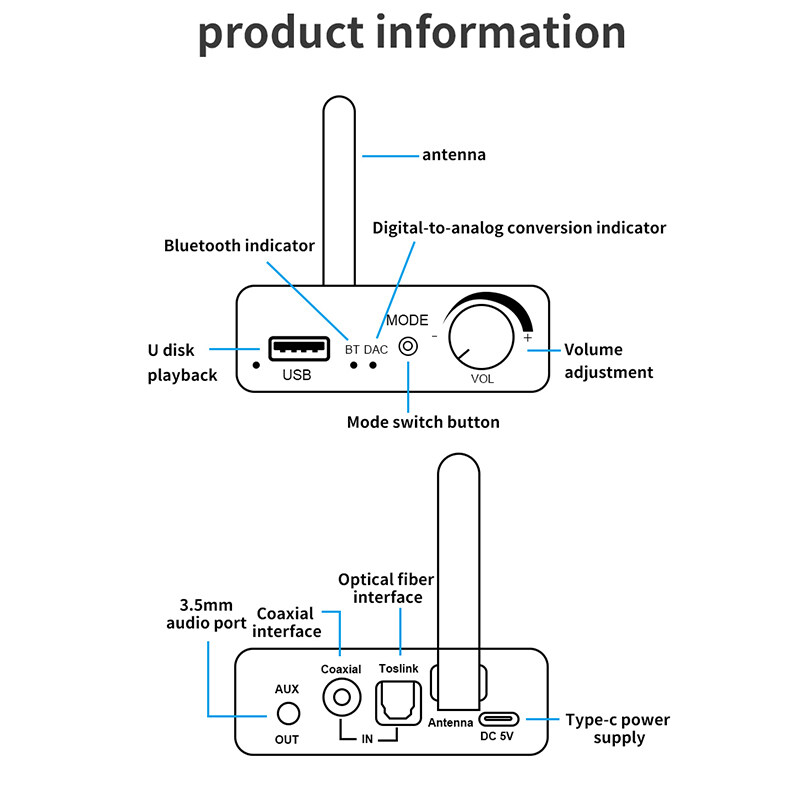 -Bluetooth Audio Receiver, Digital to Analog Audio Converter, U disk Playback Adapter.