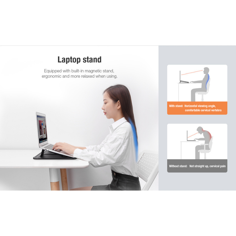 The 3-function combination reduces the burden of mobile office and work anytime and anywhere. Works as a storage bag, bracket for the laptop and mousepad.