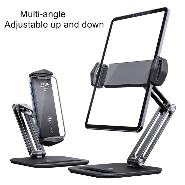 ? Product Description : - The double supporting adjustable bar with 360 degrees rotate bracket can raise the screen to a comfortable and natural height for best ergonomics. - High-Quality Aluminum Heavy Tablet Stand with Double arms Adjustable Height & Degrees - Compatible with tablets/mobile phones from 5 -14 Inch - The holder clamp and base of the tablet stand has rubber pads to protect your tablet from scratch and ensure it stays in place. ? Product Specifications : - Color: Black / White - Folded size: 17.5x15x8.5cm - Weight: 0.8 kg - Material: Aluminium Alloy and Silicone ? What's in the package? - 1x Adjustable Tablet & Phone Stand ? 3 Months Local Warranty *Terms and conditions applied *