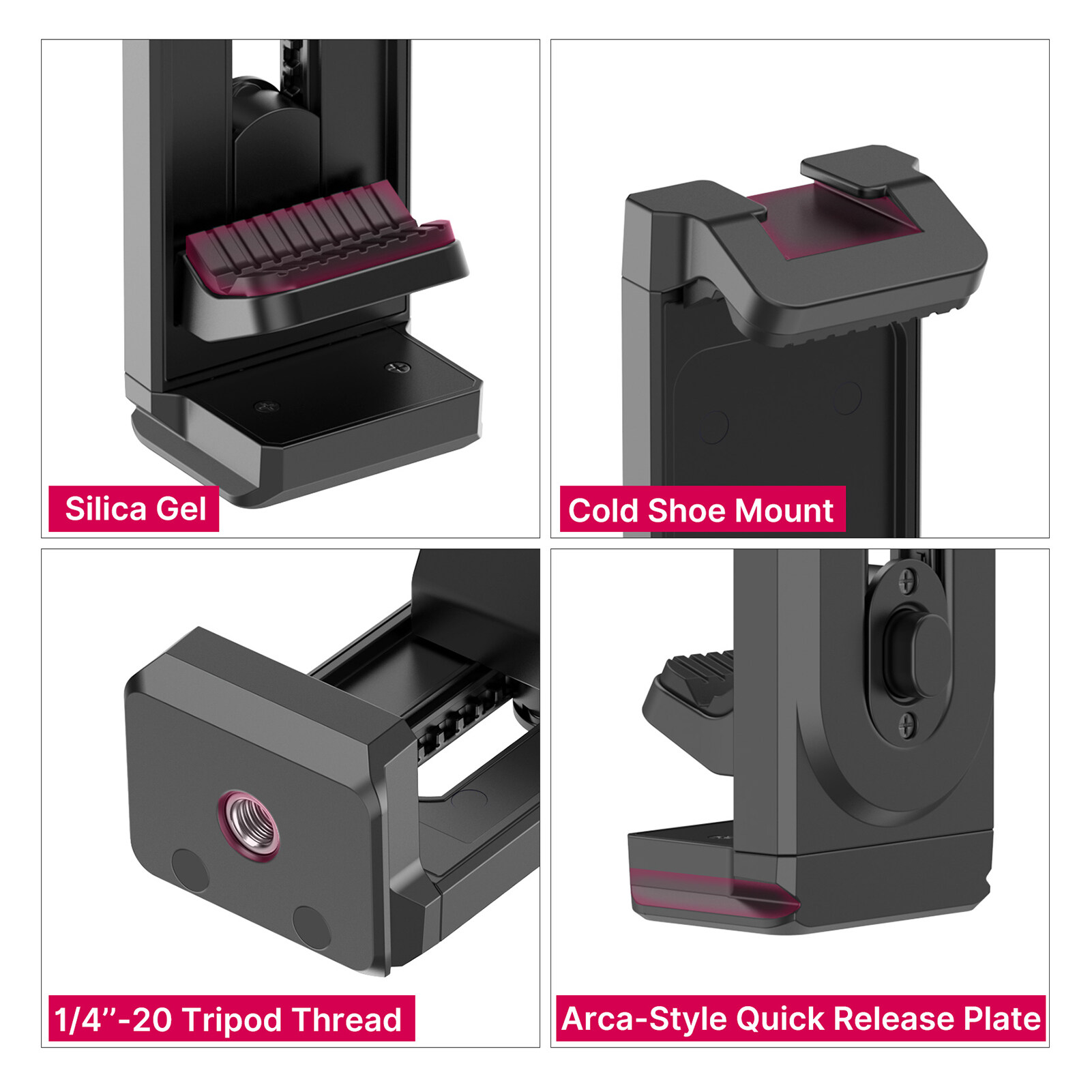 Safe to Your Devices: Silica gel pads cover the contact parts of device and clamp, protecting your