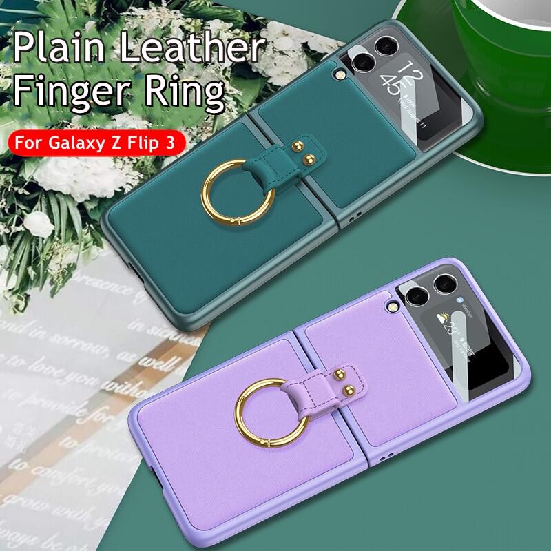 [ Ring+Tempered Glass+ Chain ]KISSCASE for Samsung Z Flip 4 Flip3 Leather Case 360 Full Protection Tempered Glass Phone Case for Samsung Galaxy Z Flip4 Flip3 Phone Case