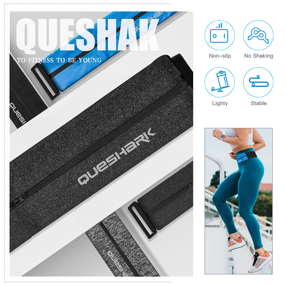 Queshark Reflective Elastic Running Waist Bag Sports Belt Bag Gym Mobile Phone Fanny Pack WasitWallet Pouch With Keychain