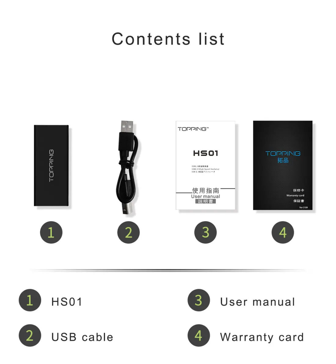 HS01 supports USB2.0 High-Speed transmission, which is compatible with high-resolution audio transmissions such as PCM32bit/768kHz and DSD512 Native.