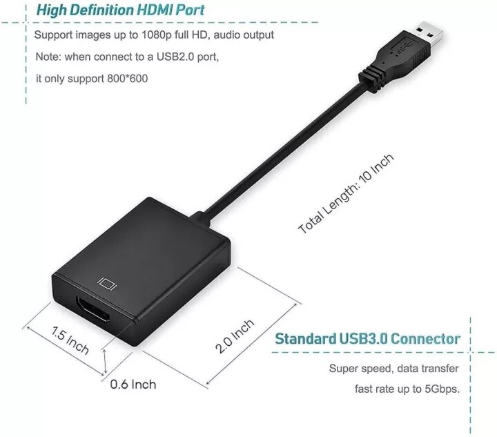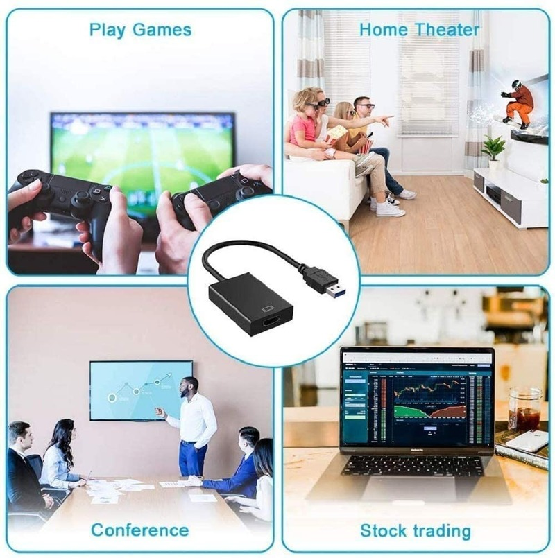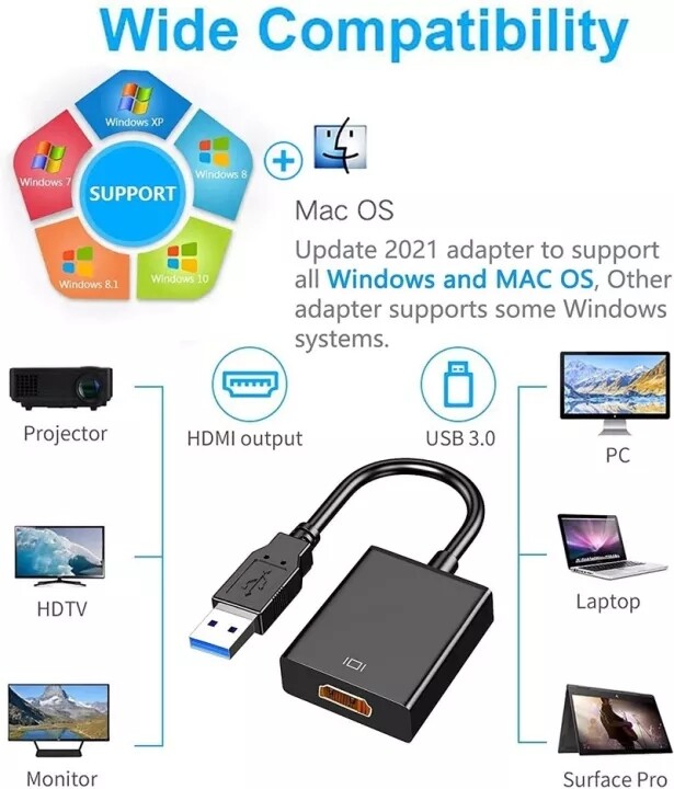 【USB to VGA adapter】will be connected to a PC or laptop with a USB 3.0 / 2.0 port to connect to a high -definition TV, projector or display with a VGA port to get the second screen. VGA cables are sold separately. This adapter is compatible with Windows XP, Windows 7, Windows 8 / 8.1, Windows 10.