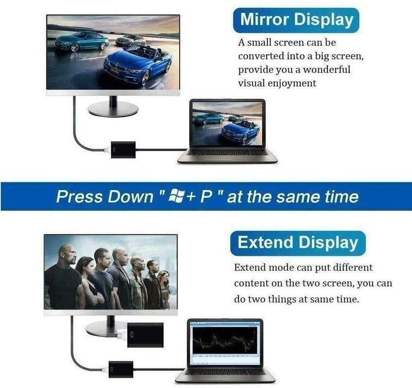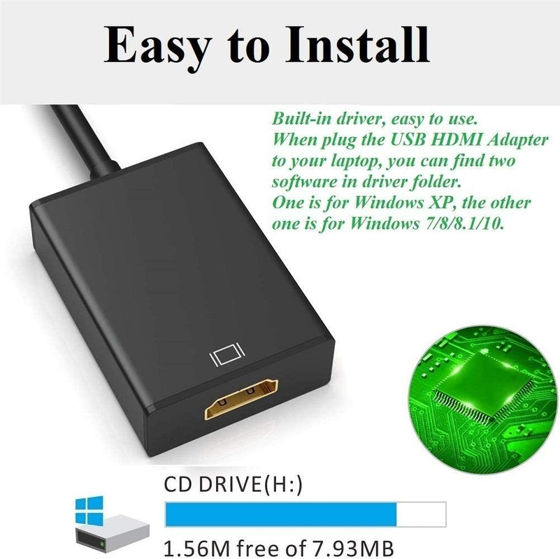 【USB to VGA adapter】will be connected to a PC or laptop with a USB 3.0 / 2.0 port to connect to a high -definition TV, projector or display with a VGA port to get the second screen. VGA cables are sold separately. This adapter is compatible with Windows XP, Windows 7, Windows 8 / 8.1, Windows 10.