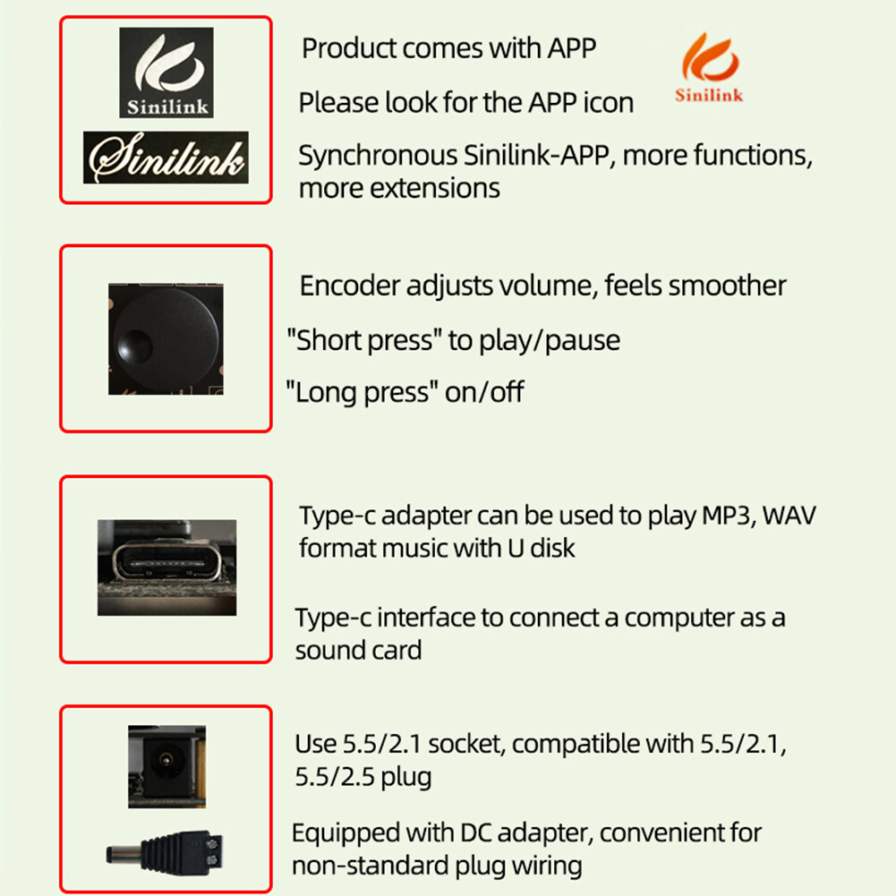 Support mobile APP control. Visual operation playback mode; APP download: Please download for Google Marketplace and search 'Sinilink' to download