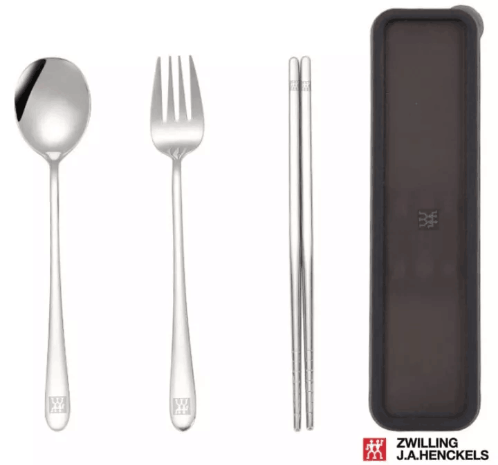 Zwilling stainless steel cutlery setConvenient, light and easy to carry anywhere.Made of real 304 stainless steel with a durable packaging box.The stainless steel is thickened, does not rust, has a bright surface, and is easy to clean.High-definition polishing, safe without sharp points.Use at home, at work, at a picnic or as a gift.Portable, compact tableware can be easily put in a bag. Suitable for travel, camping, hiking and family use. Or take it with you in your daily life. Stainless steel material, smooth surface, easy to clean. A plastic box is included to store accessories. Features: Durable, easy to carry, easy to clean, smooth surface. The package includes: 1 spoon, 1 fork, 1 pair of chopsticks, 1 plastic box.