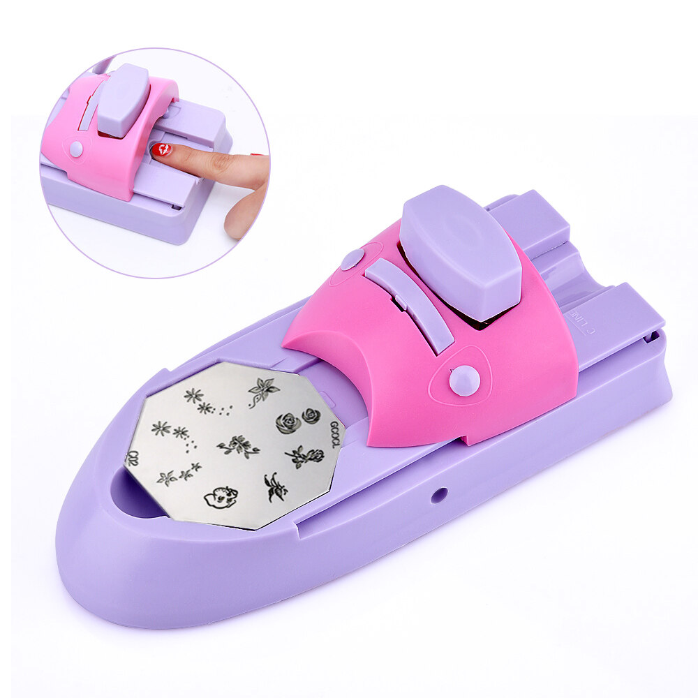 Manual Nail Art Printing Machine with 6pcs Metal Stamping Plates Manicure Nail Color Draw Polish Nail Printer Set Tool