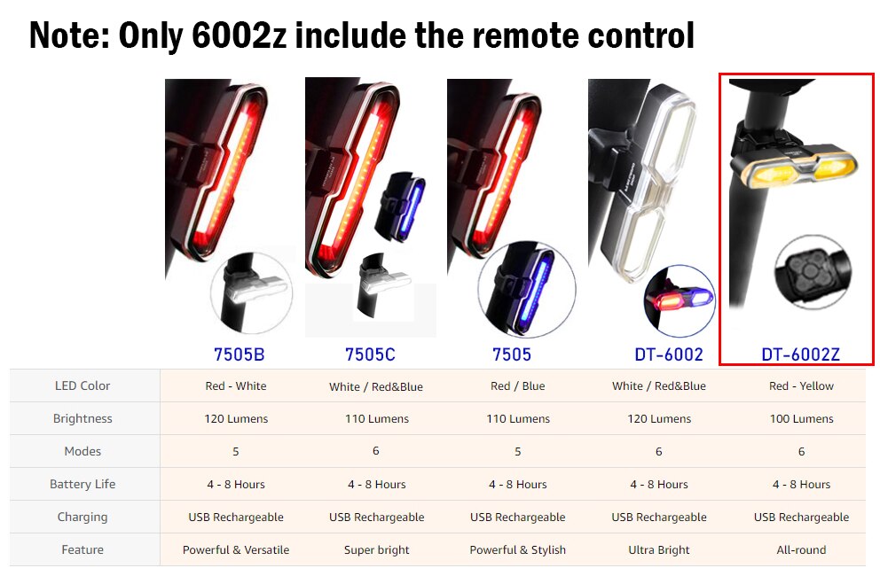 * The Difference between the lights (Only 6002z include the remote control)