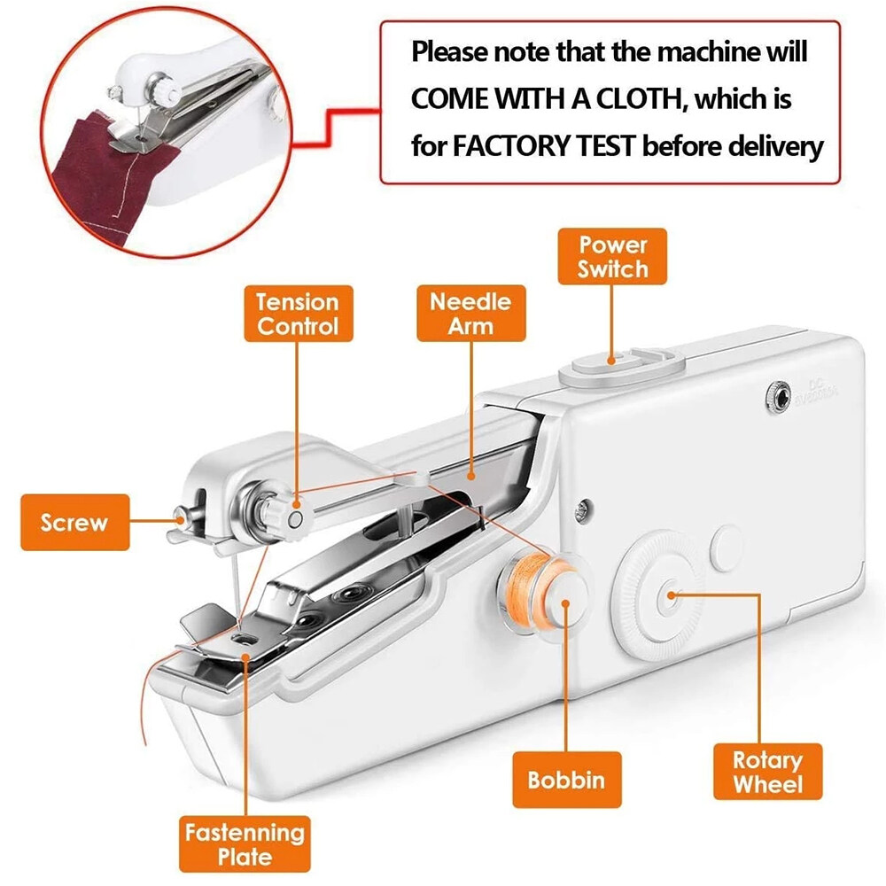 Handheld sewing machine, Single stitch, Battery or power adaptor operated.Handheld sewing machine, Single stitch, Battery or power adaptor operated.