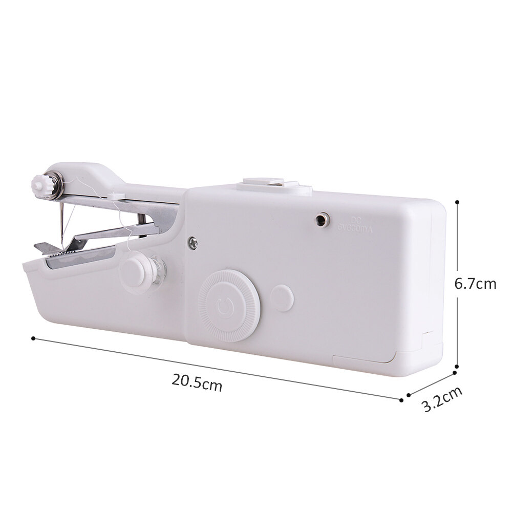 - Package included:1 x Sewing machine (Batteries not included);1 x Needle;3 x Bobbins with thread;1 x Needle threader;1 x User manual;1 x A piece of fabric