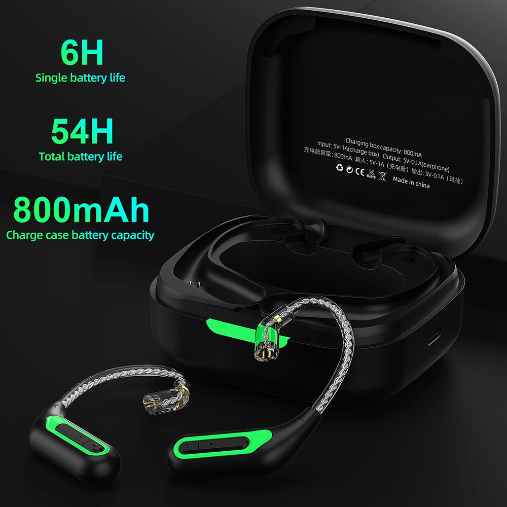 HD Bluetooth wireless, HIFI experience. In order to provide a longer battery life, we designed a large cavity charging case for AZ10. It can accommodate more sizes of earphones and earhooks at the same time, which is more convenient to operate. The battery case has a built- in 800mAh battery, which can provide you with up to 54 hours of battery life.