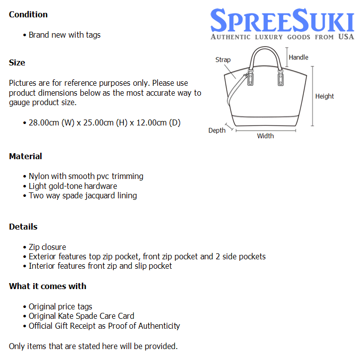 Original price tags Original Kate Spade Care Card Official Gift Receipt as Proof of Authenticity Original Kate Spade Paper Bag