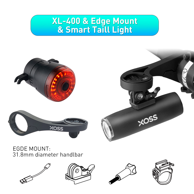 Brand: XOSS Model: XL-400 Meterial: Aluminum Alloy Lumens: 400 lm Modes: High light, Medium light, low light, flash light, SOS Running Time: 2.5-5 hrs Battery: 2000 mAh Net Weight: 134 g Warranty: 1 year