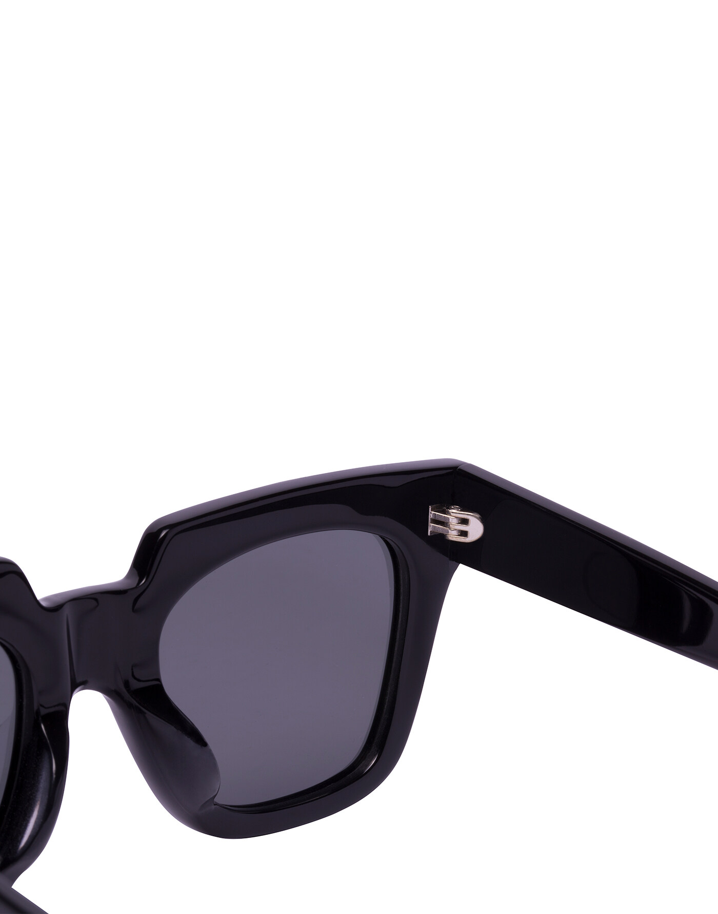 Square, black frame with polished finish and black lenses
