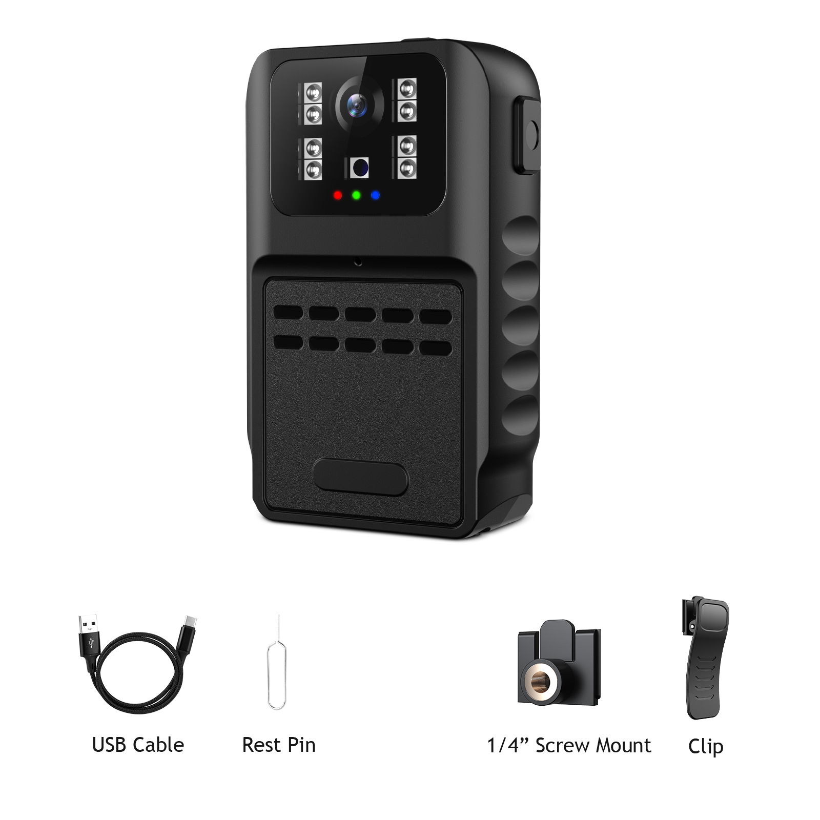 The optional bike bracket could help to mount the mini cam to the bike handles, get unforgetable memory of traveling. 1/4" connection also could attach the device to the car suction cup, act as a dash cam. A black detachable clip could clamp to the pockets.