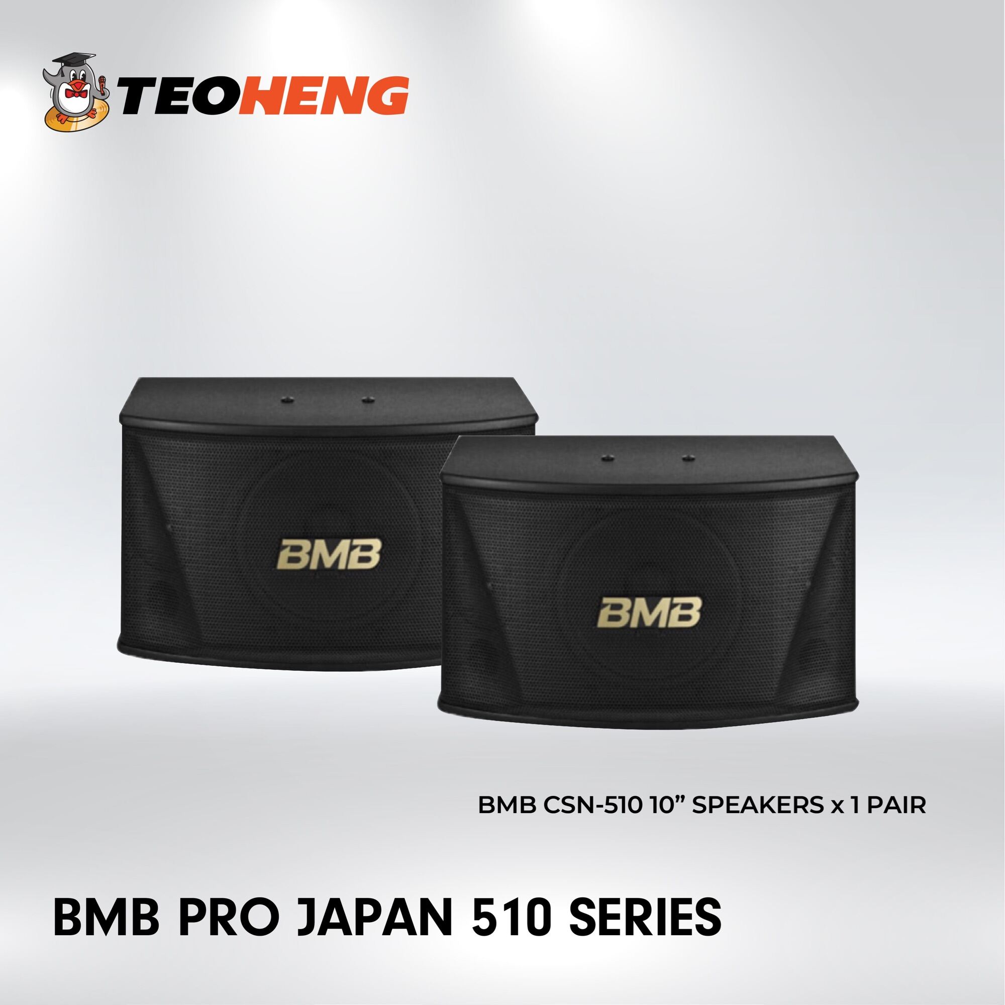 The BMB CSN Series is the top choice for entry-level karaoke speakers. It provides the best mixing of music and microphone sound to give you one of the best experiences. Like all BMB speakers, this unit has been made with high-quality components from the highly reliable paper cone which is made in Japan, to the 3D curved grill, and structurally rigid cabinet design. Even if you currently have an amplifier and speaker system, simply switching speakers will change your listening experience entirely. Music and vocals will be heard with much clarity. The new CSN-510 is a 450W speaker with a newly designed bass reflex port shape which helps produce very nice bass and has a curvaceous 3D-formed designed metal grill to protect the 2 front speakers.