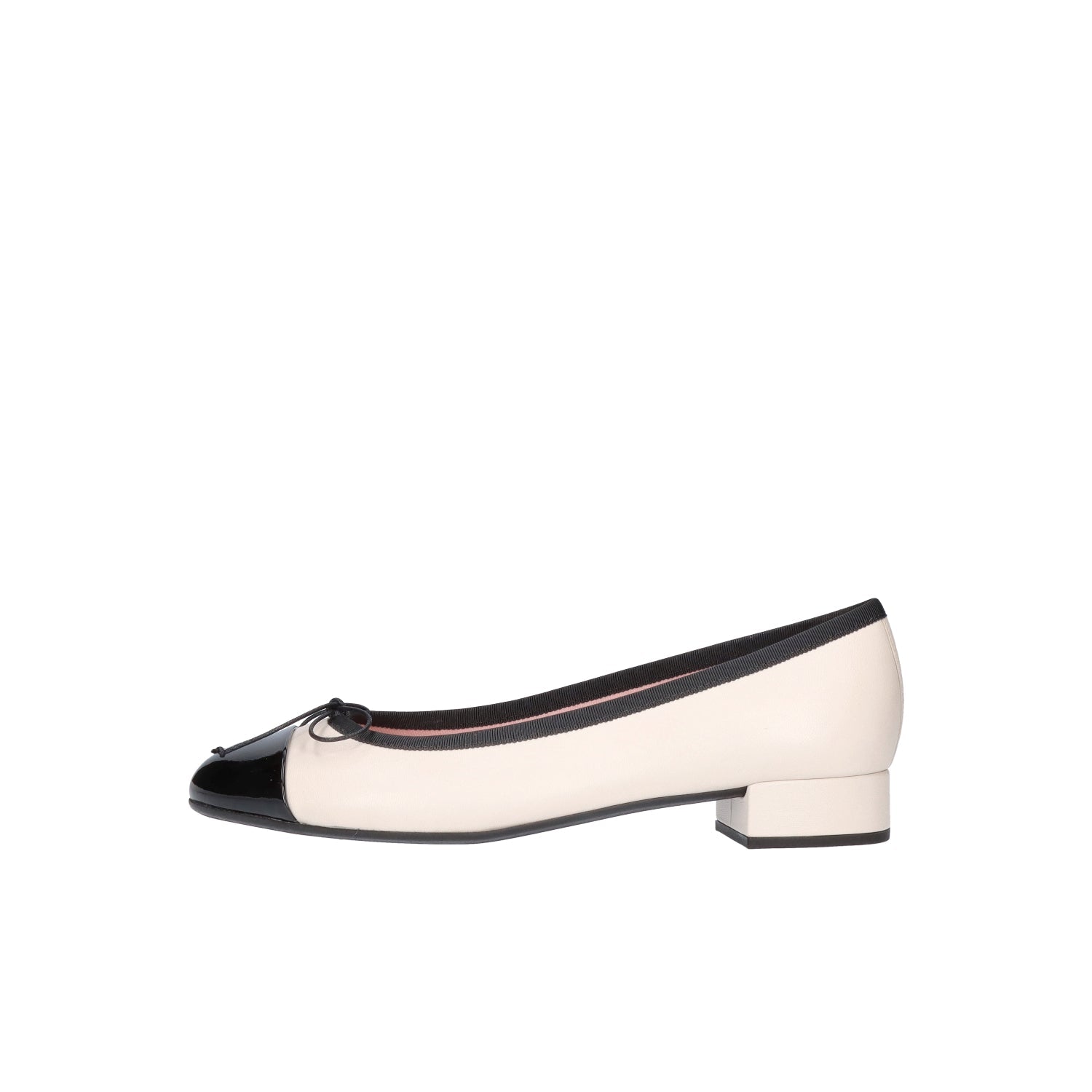 Round Toe Block Heel Ballerinas with Ribbon Detail, Rubber Sole and Leather Insole