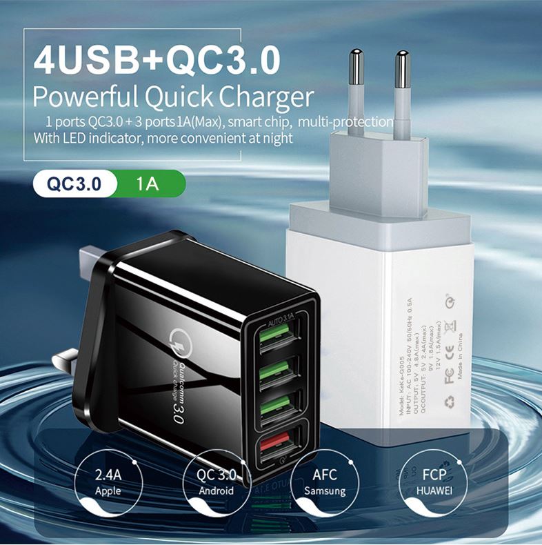- 4 USB ports, charging 4 devices at the same time.