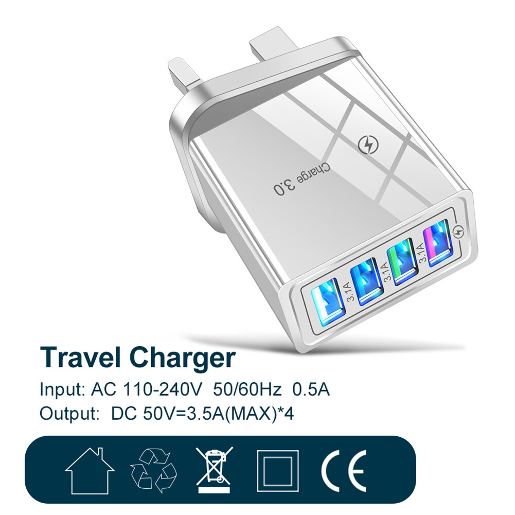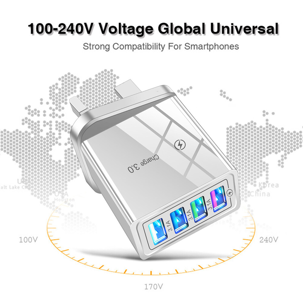 4 Ports USB Charger for Mobile Phone 4USB Wall Charging Adapter with LED Display Home Travel