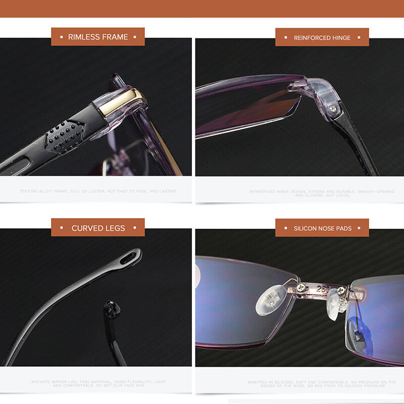 1. Progressive multifocal technology, creates 3 zones for different types of vision, for far near sight eyewear. And no need to take off without fatigue for long time wearing.