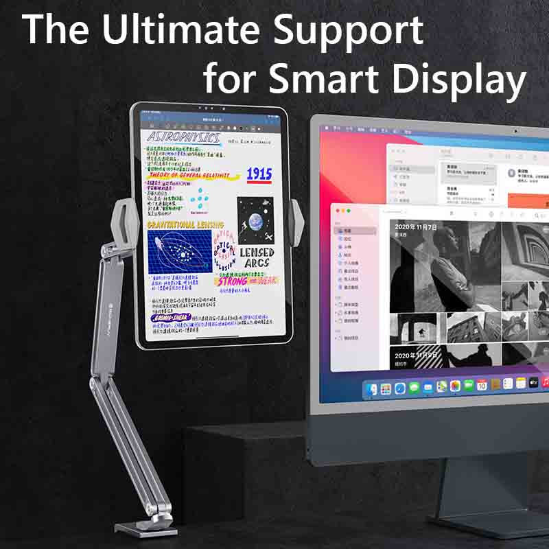 --------------------------------------------------- Ship from Singapore Locally ️ All ready-stock products in Singapore J&T Express Delivery (With Tracking) All Order will be dispatch out with 24Hrs From Monday - Saturday Except for Sunday & Public Holiday --------------------------------------------------- Product Description: 1. Multi-joint adjustable, Height/angle freely adjustment 2. Full aluminium alloy material for base and arm, Match with the MAC surface 3. Max loading 1KG, Stable without shaking 4. 360° rotation screw structure base, Support clamping desk thickness 0-64mm 5. Wide compatibility, Fit for Cell phones and tablet pc from 4 inches to 13 inches. Product Specification: Material: Aluminium Alloy and Silicone Gel Product Colour: Grey/Silver Product Size: 65.8 x 16.6 x 6.6cm Product Weight: 0.47 kg What's in the package? - 1x Holder Clamp 3 Months Local Warranty *Terms and conditions applied *