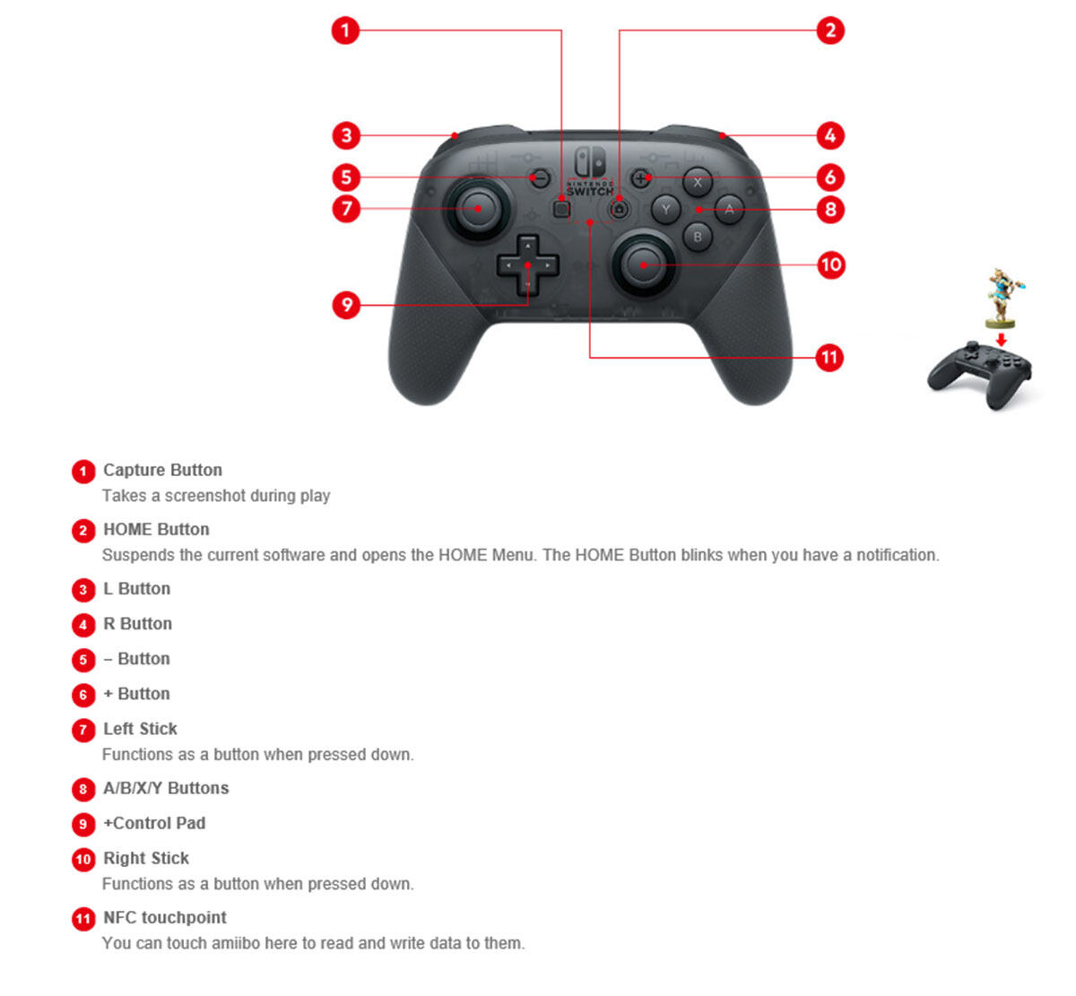 1.HOME key: Power controller on or execute commands from Switch/ Switch Lite console.